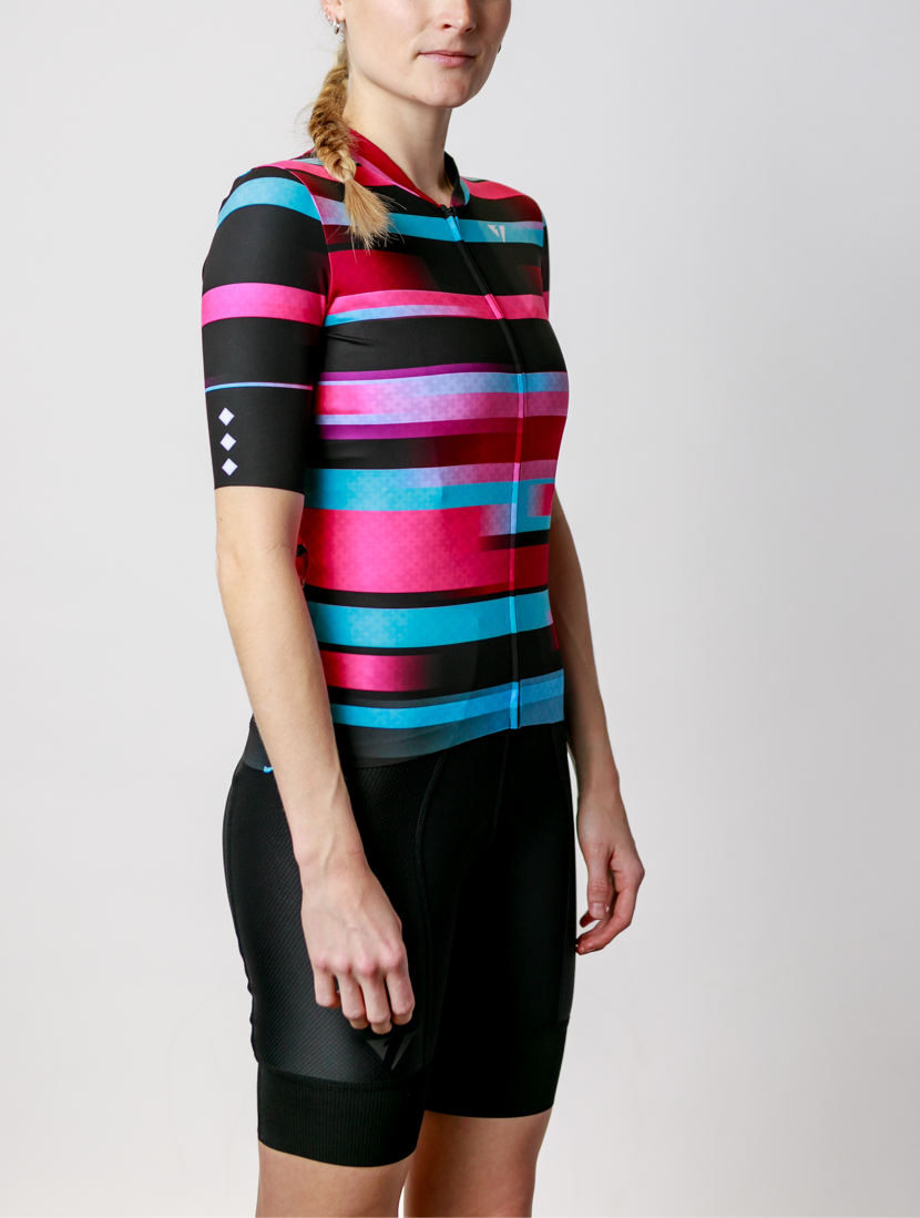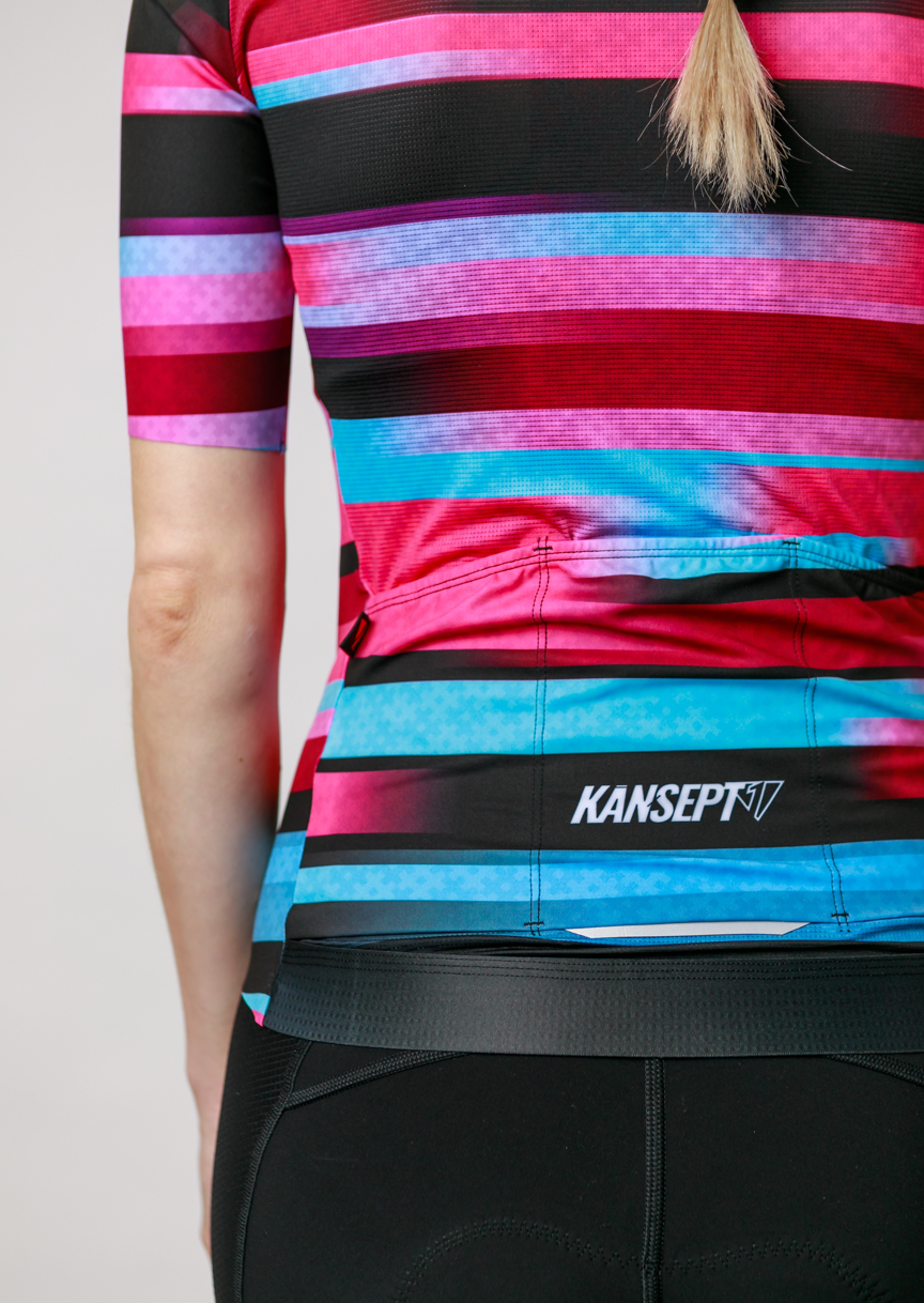 Kansept1 Women's ProSpec Rouleur HZ Jersey | EPYC Supporters | Sportivo stripes in Bright Blue + Hot Pink + Obsidian Black